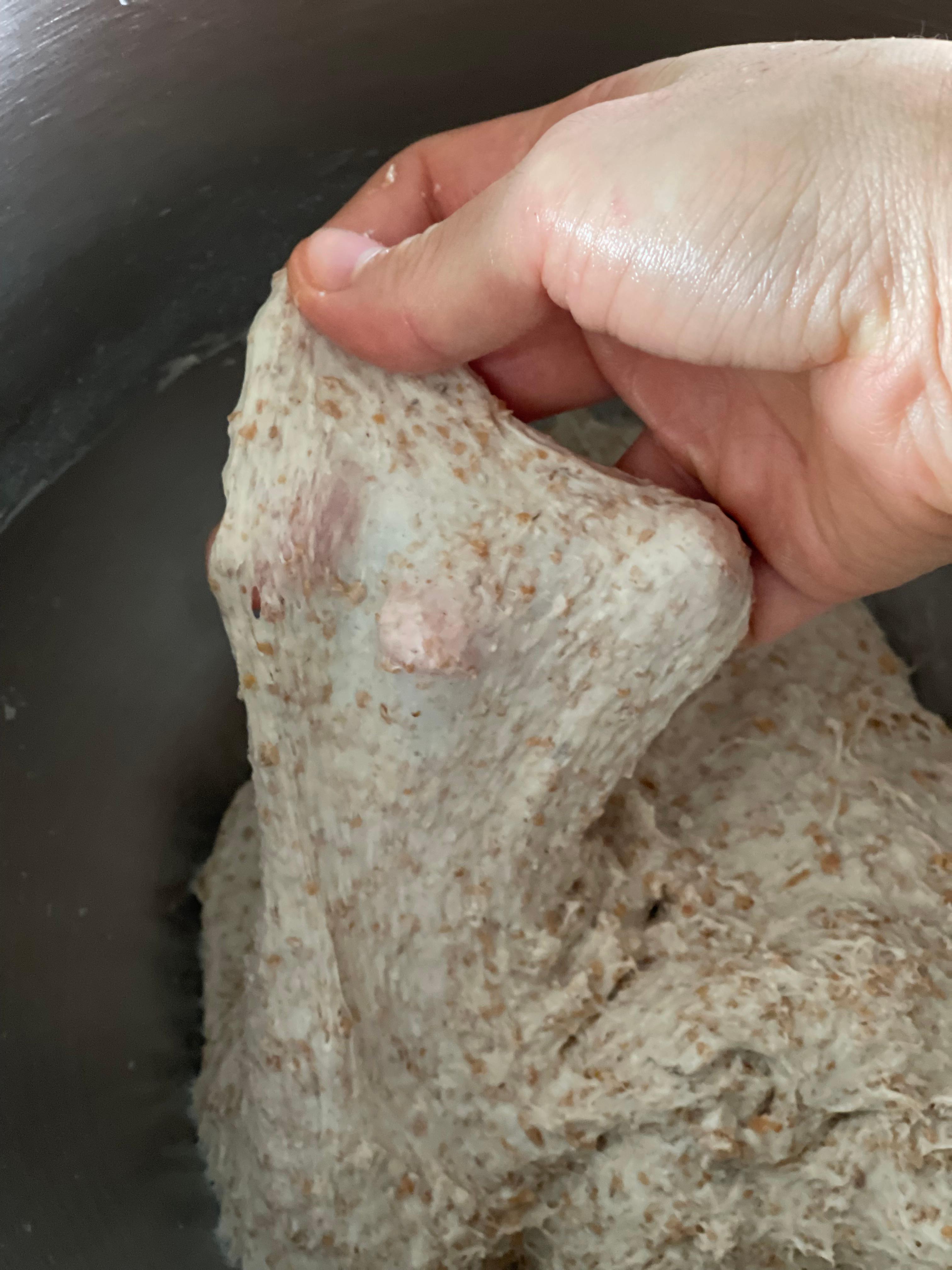 수분율은 낮았지만 오토리즈를 2시간 충분히 진행해 밀기울이 충분히 불었기에 퍽퍽하지 않고 오히려 촉촉하고 맛있었다.