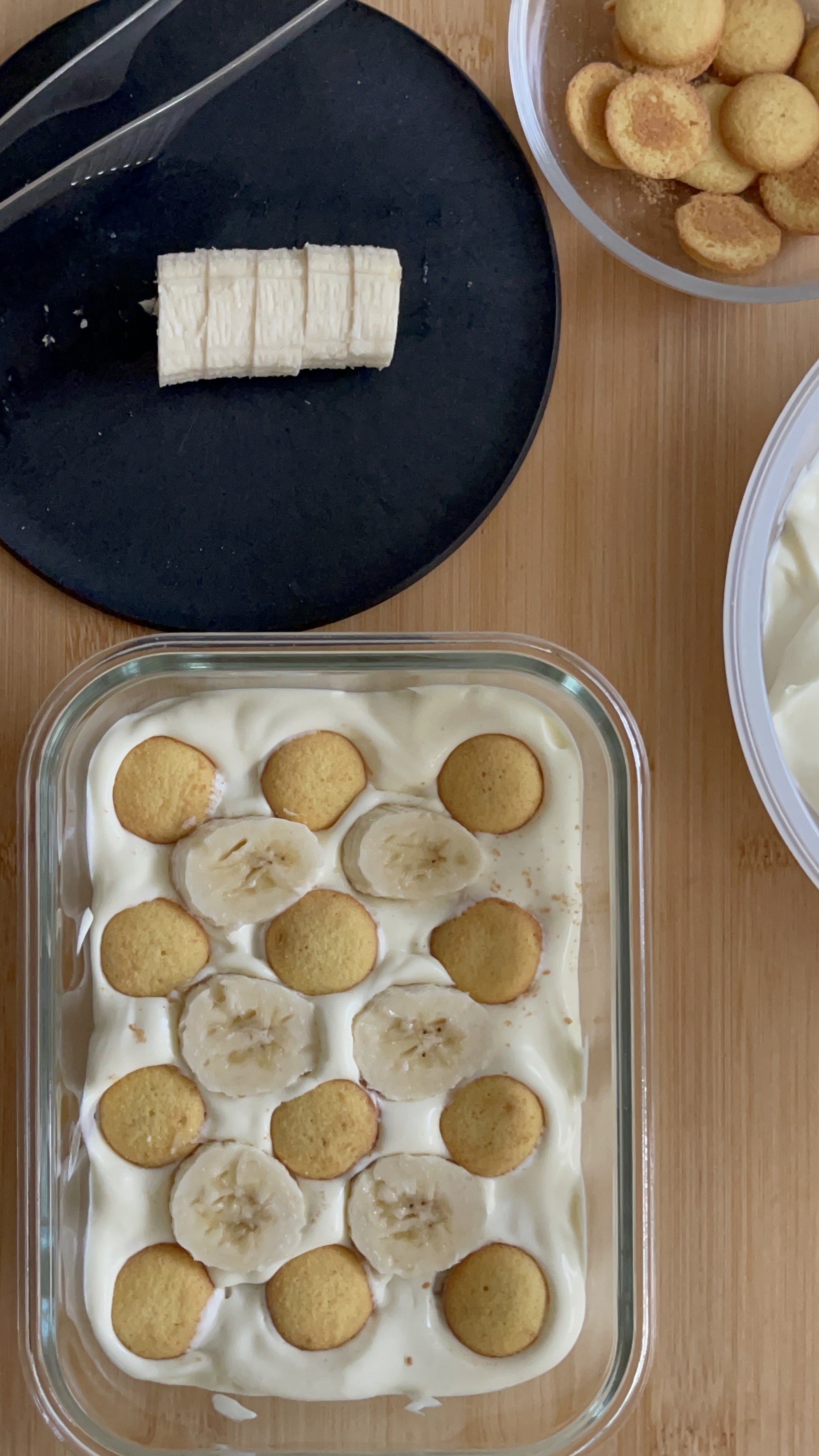 지난번에는 디플로매트 크림과 계란 과자를 직접 만들어 바나나 푸딩을 만들었었다. 이번에는 원조 레시피 설명대로 인스턴트 푸딩 믹스와 시판 계란 과자를 사용해 만들어봤다.