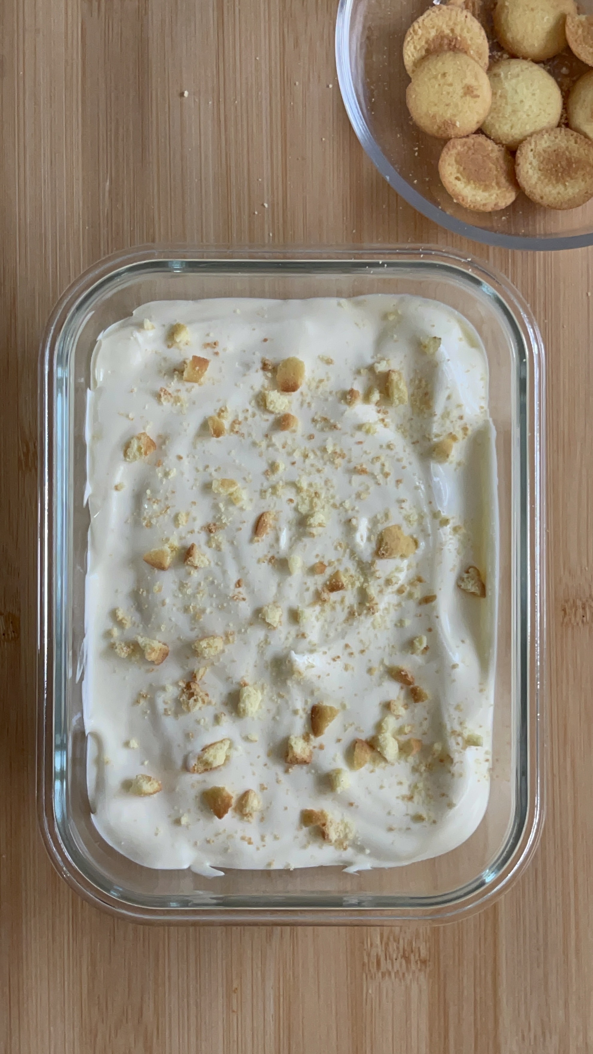 인스턴트 푸딩 믹스 사용은 처음이라 맛이 궁금했는데, 휘핑크림에 섞으니 부드럽고 달콤한 커스터드 맛 크림이 되었다. 크림은 전날 미리 만들어 냉장 보관했다가 다음 날 바나나 푸딩을 조립했다. 크림양이 상당해서 580ml 용기로 바나나 푸딩 4-5컵은 나올 양이었다.