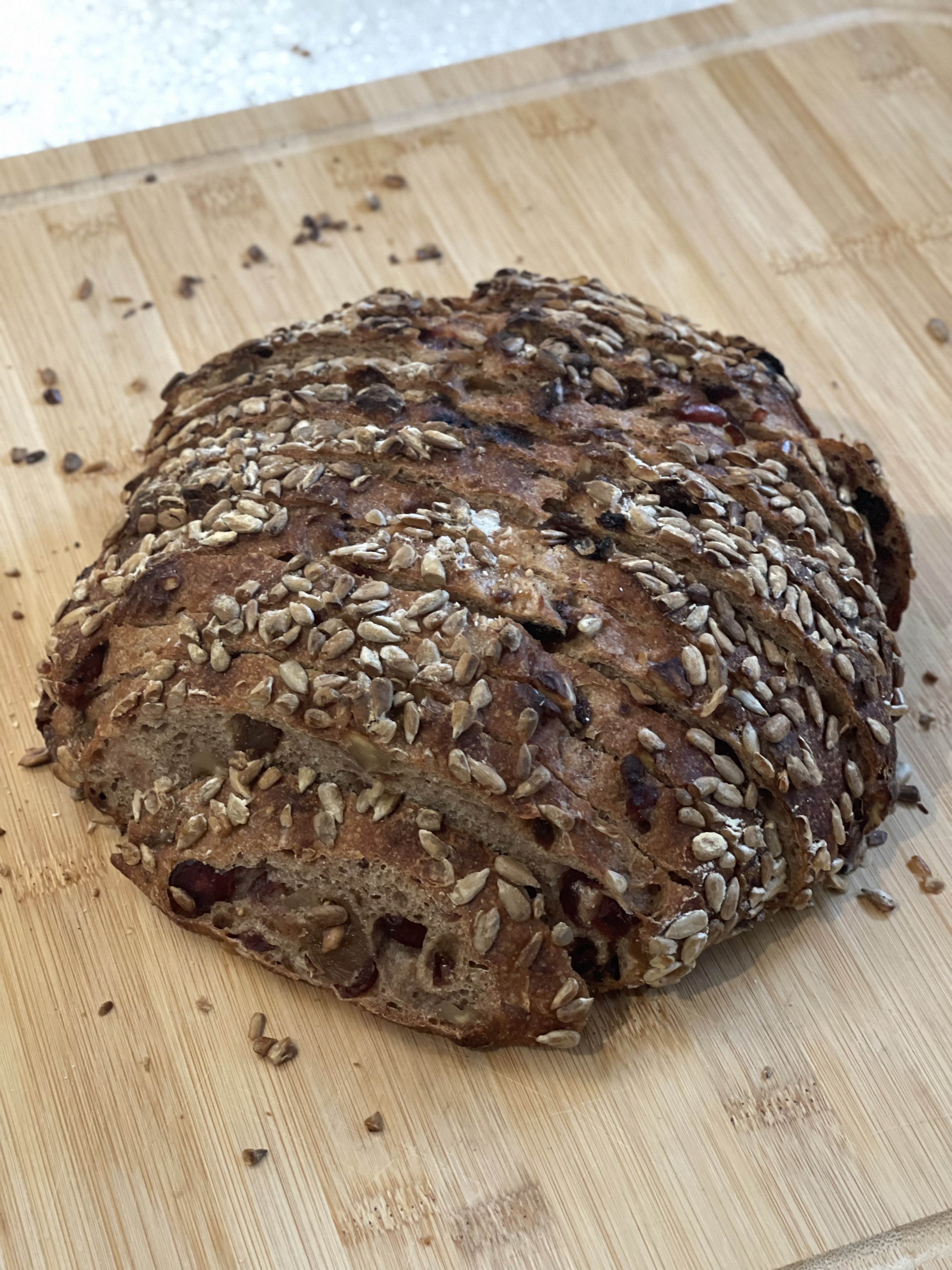 앙꼬님의 넛츠 통밀빵은 달콤한 건과일과 고소한 넛츠가 듬뿍 박힌 통밀빵이다.