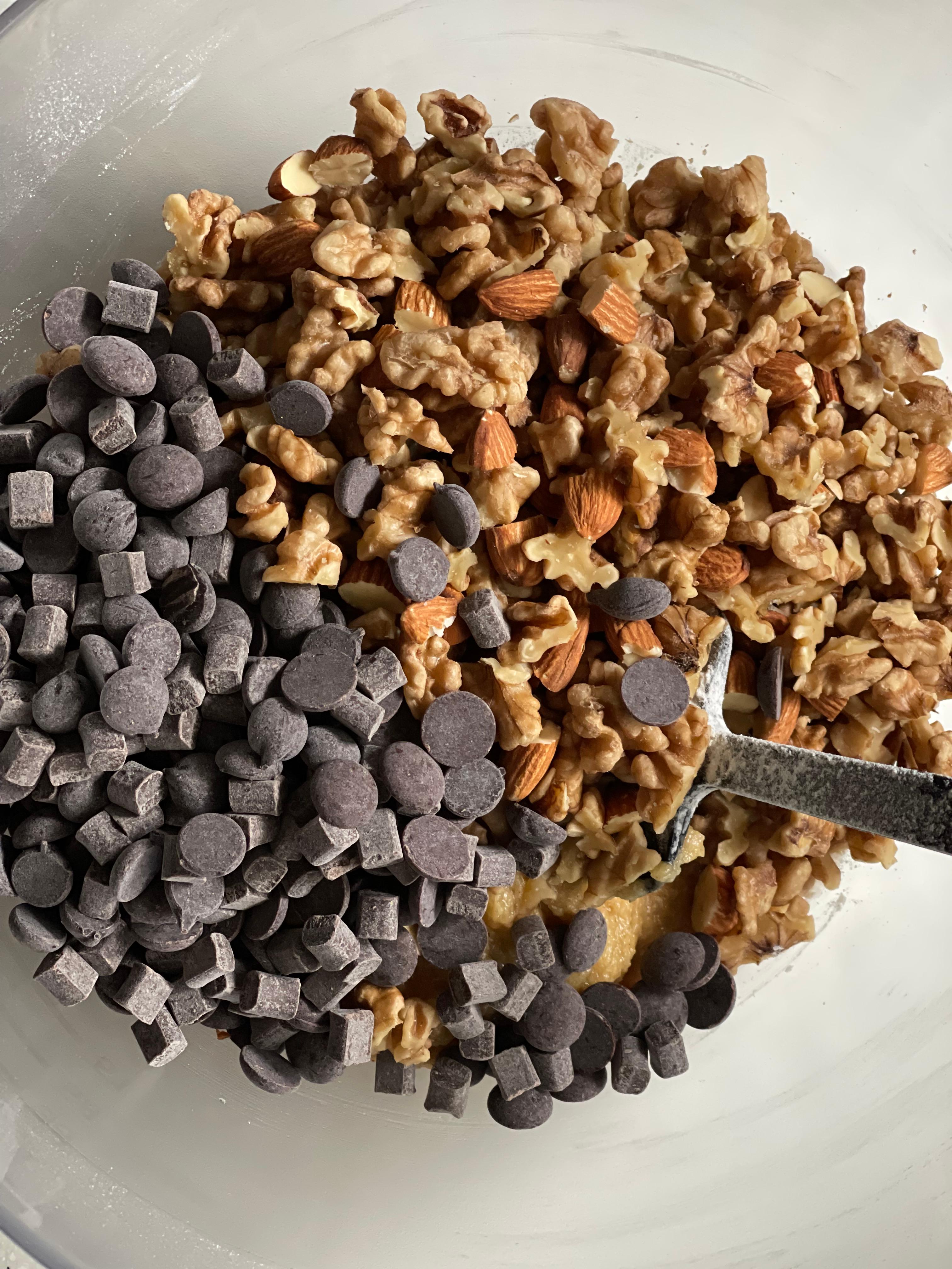 호두, 아몬드를 넣고 주걱으로 고루 섞는다.
