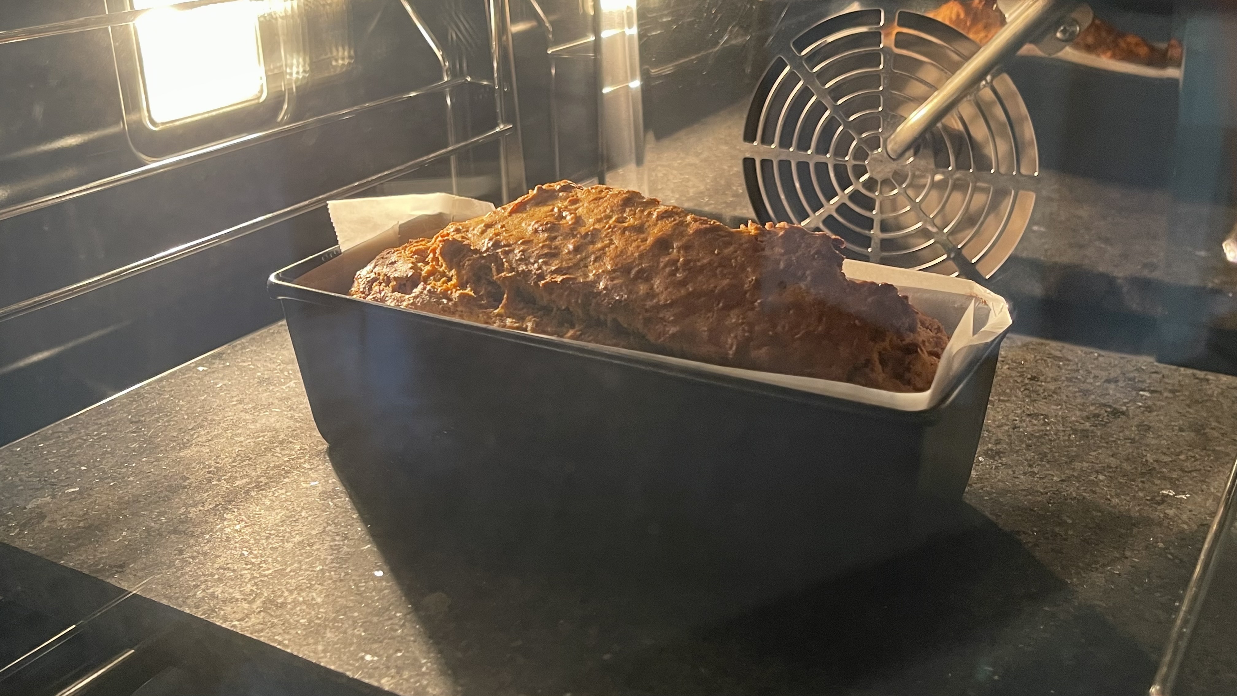 원 레시피는 15cm 원형틀 기준 55분이었지만, 파운드 틀은 얇고 길어 온도를 5도 낮추고 시간을 10분 줄였다.