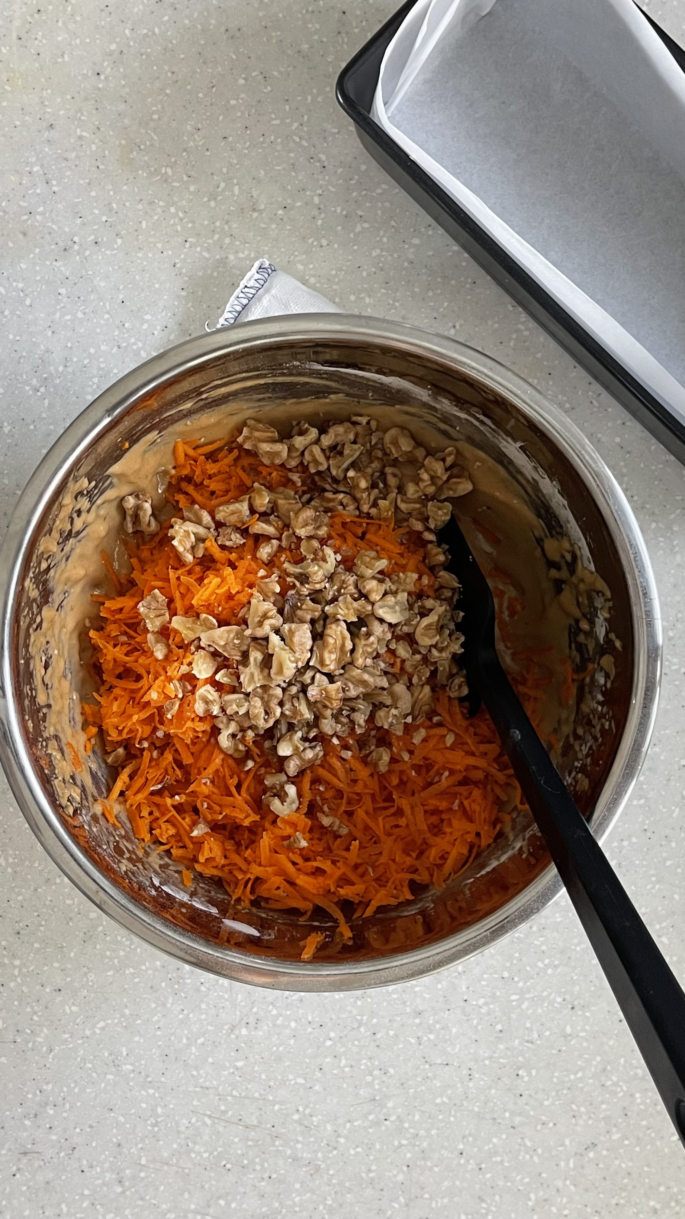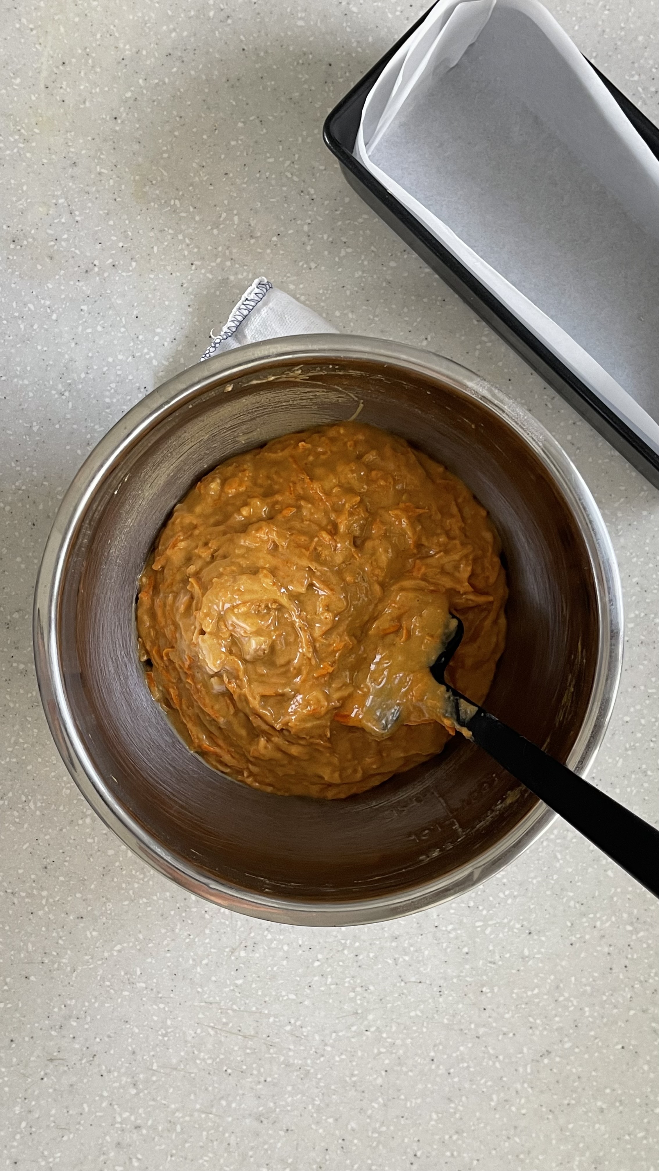 그 덕에 반죽이 꽤 뻑뻑했지만, 오일을 넣고 휘퍼로 섞어주니 매끄럽게 잘 섞였다.
