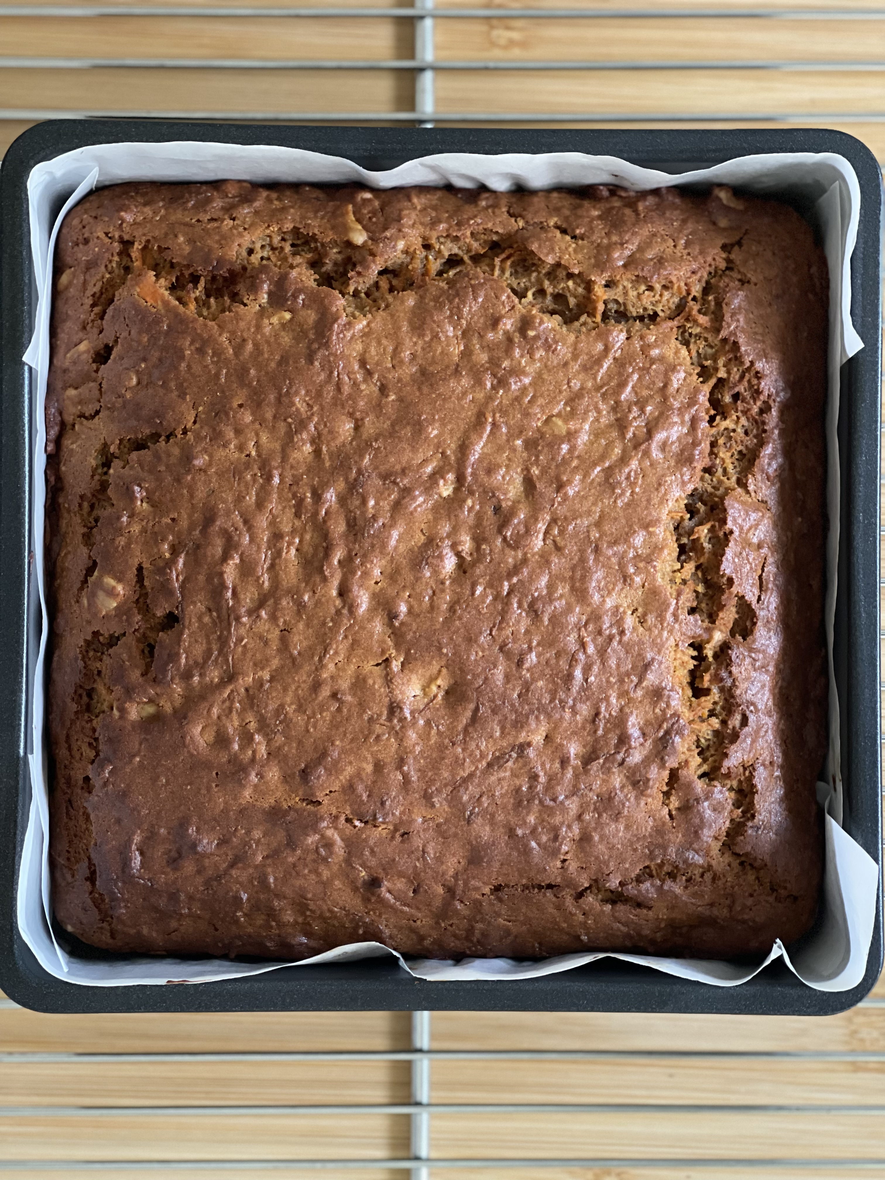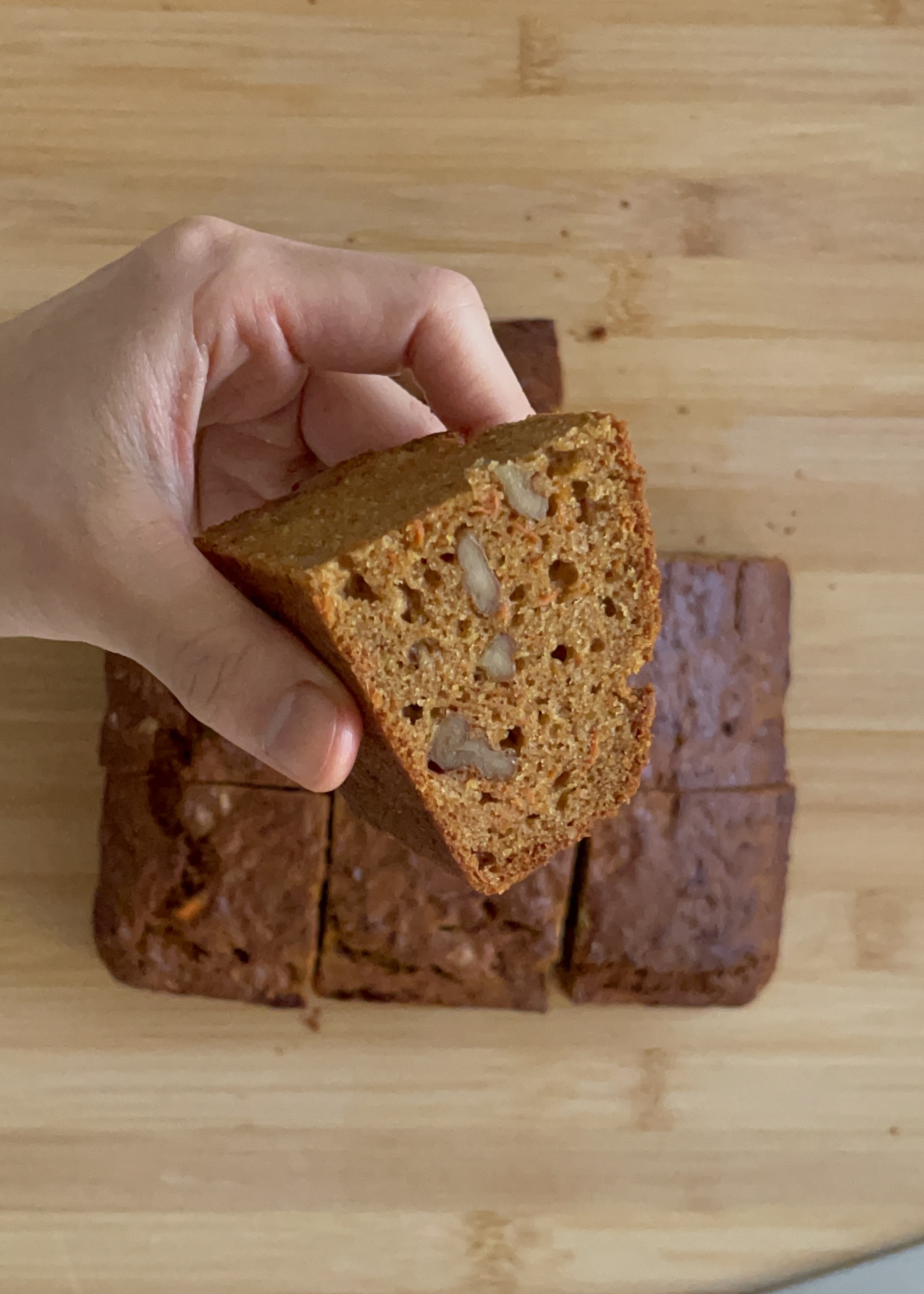 결과는 — 기존 레시피보다는 덜 촉촉하지만 포근하고 은은하게 달달한 당근 케이크.