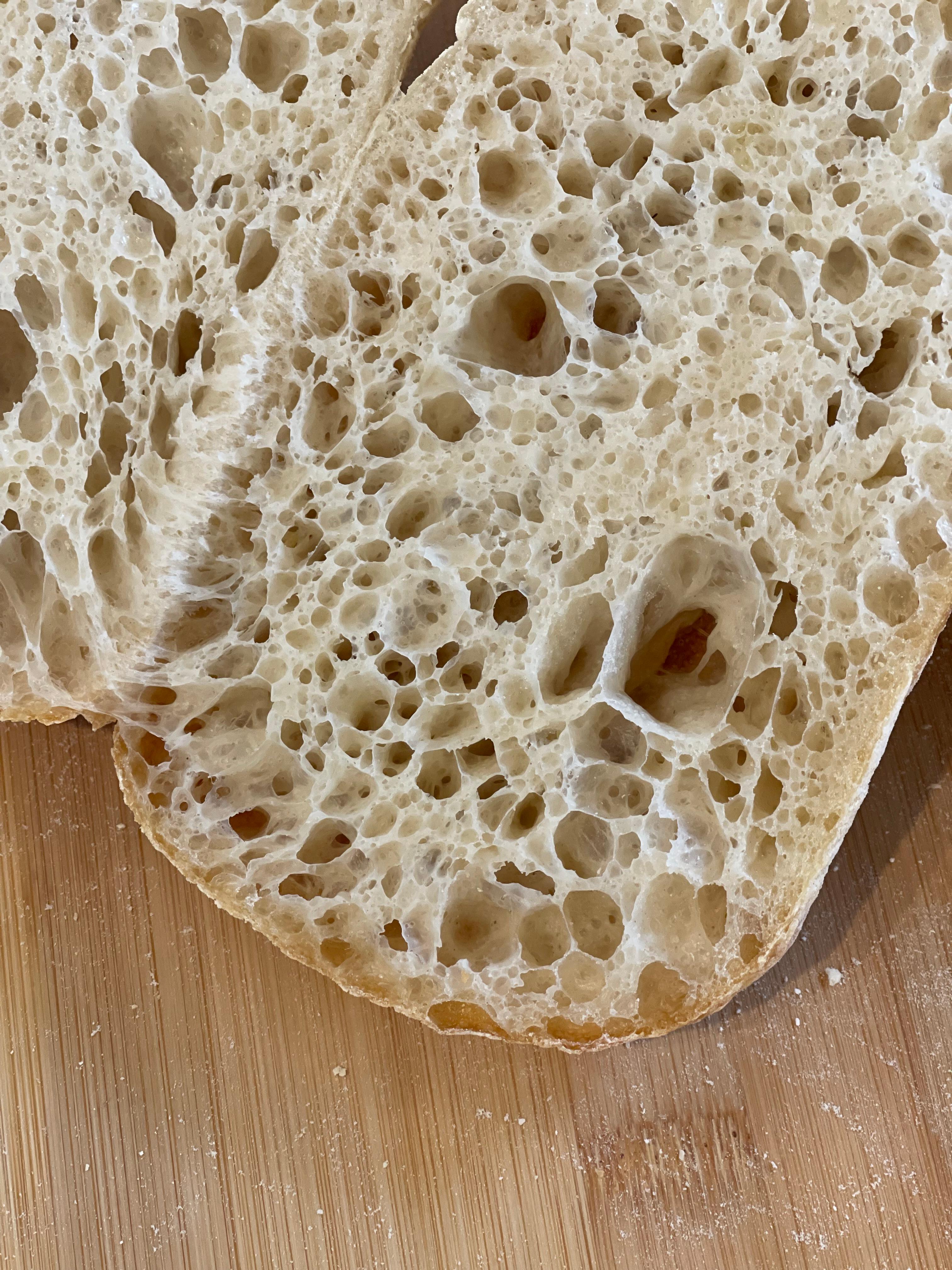 단면을 잘라보니 지난번보다 크고 작은 기공이 고르게 자리 잡았고, 르방 특유의 향과 풍미 또한 개선되었다.