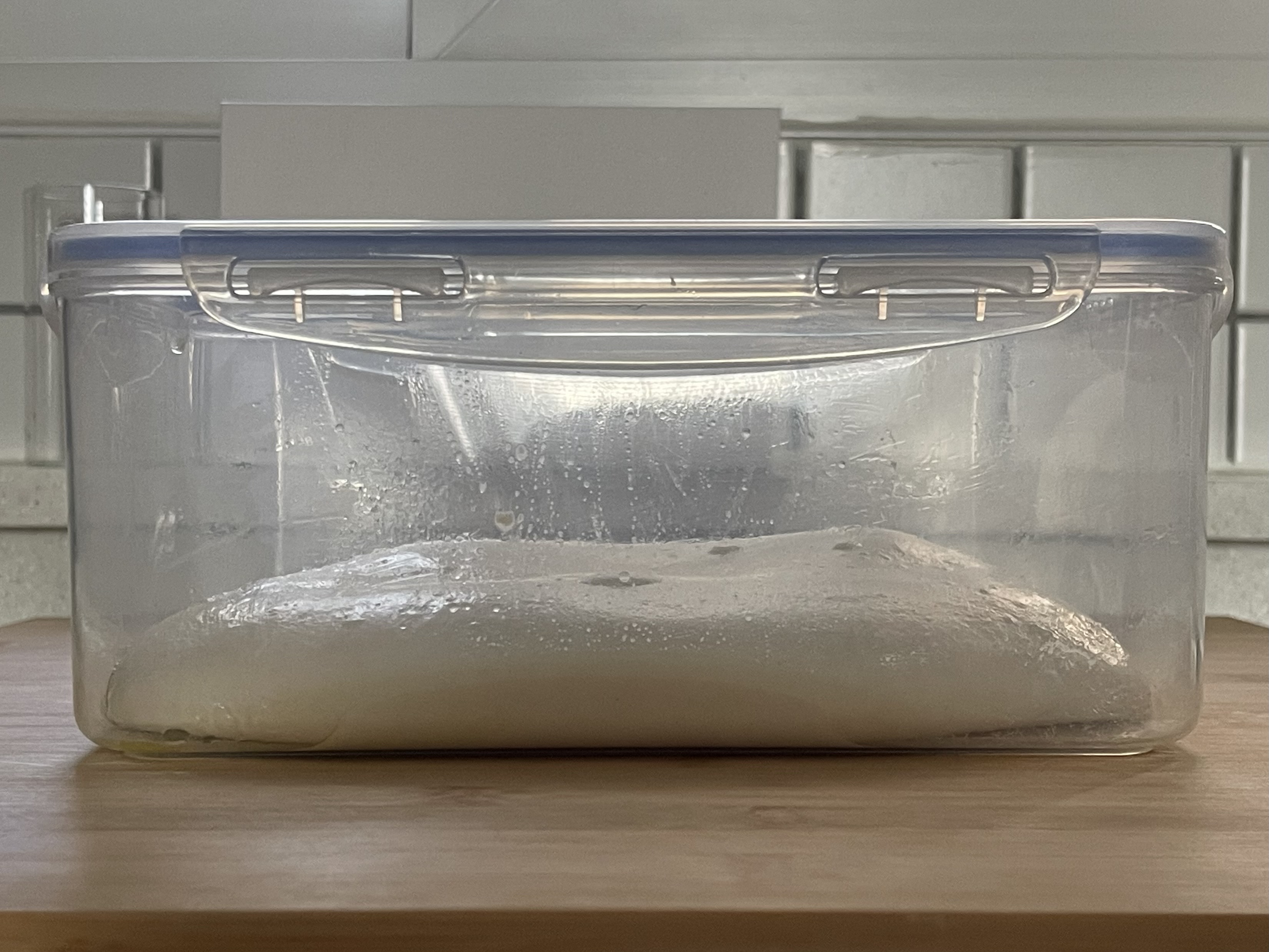 지난번엔 용기가 너무 넓어서 반죽이 퍼지는 느낌이었는데, 이번엔 반죽 크기에 맞는 용기로 바꿨다.