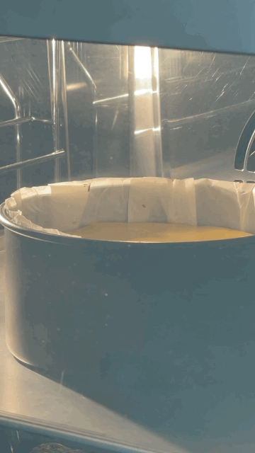 출렁출렁할 때 꺼내면 식는 동안 높이의 1/3 정도가 자연스럽게 가라앉는다.