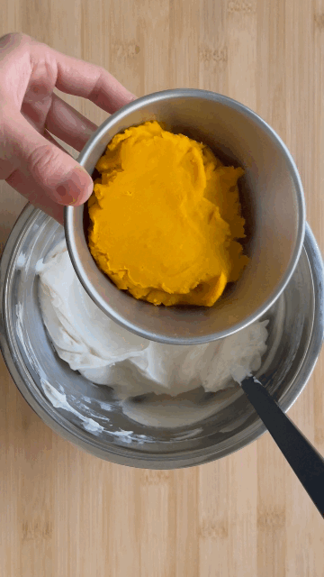 밤호박은 영상 속 단호박 퓨레처럼 부드럽게 풀리지 않고 다소 되직한 질감이라,