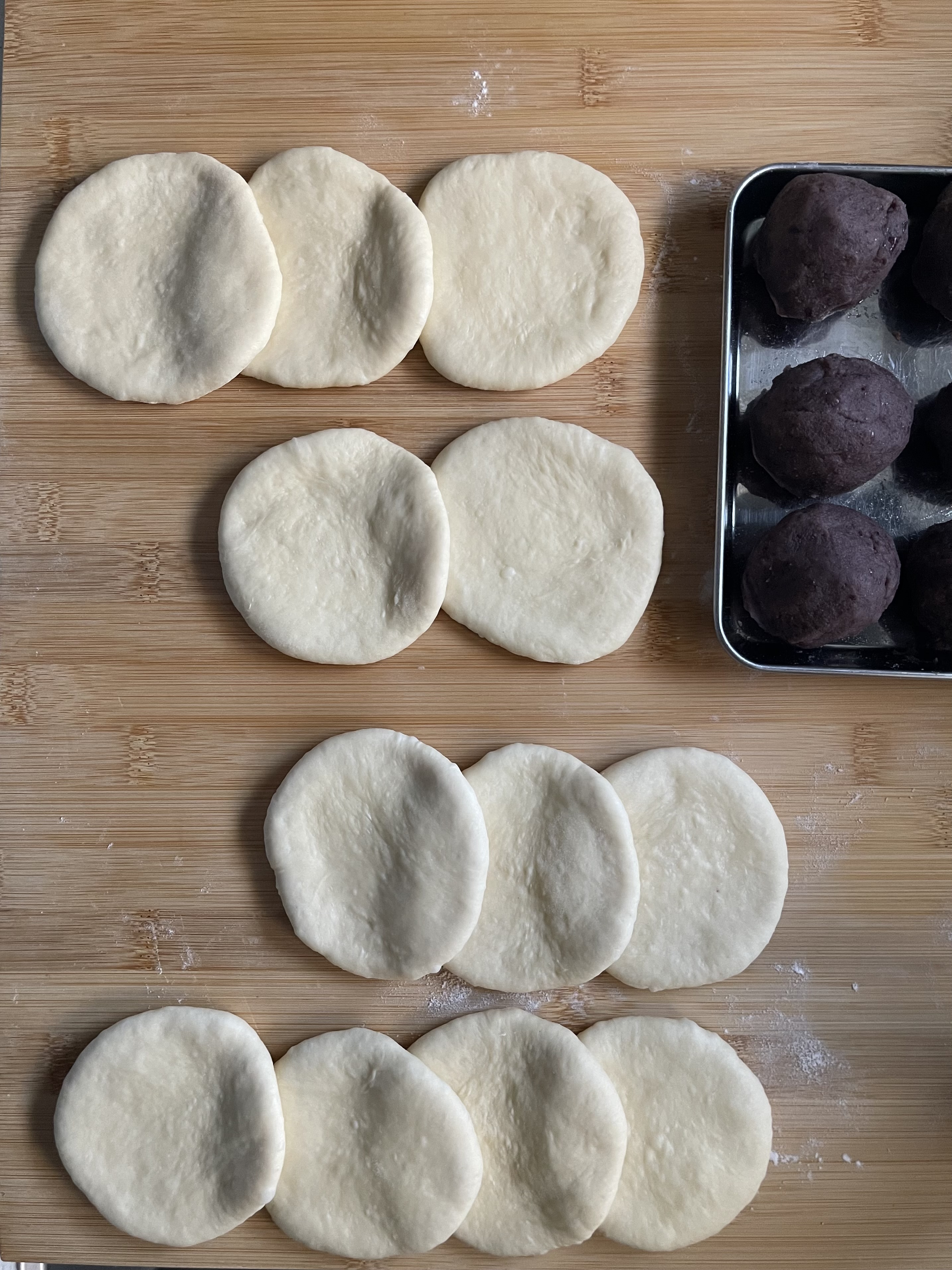 이번엔 단팥소를 개당 60g으로 늘려 넣었더니 평소보다 더 묵직했다. 소가 많다 보니 이음매가 자꾸 벌어져서 성형이 쉽지 않았다. 💦