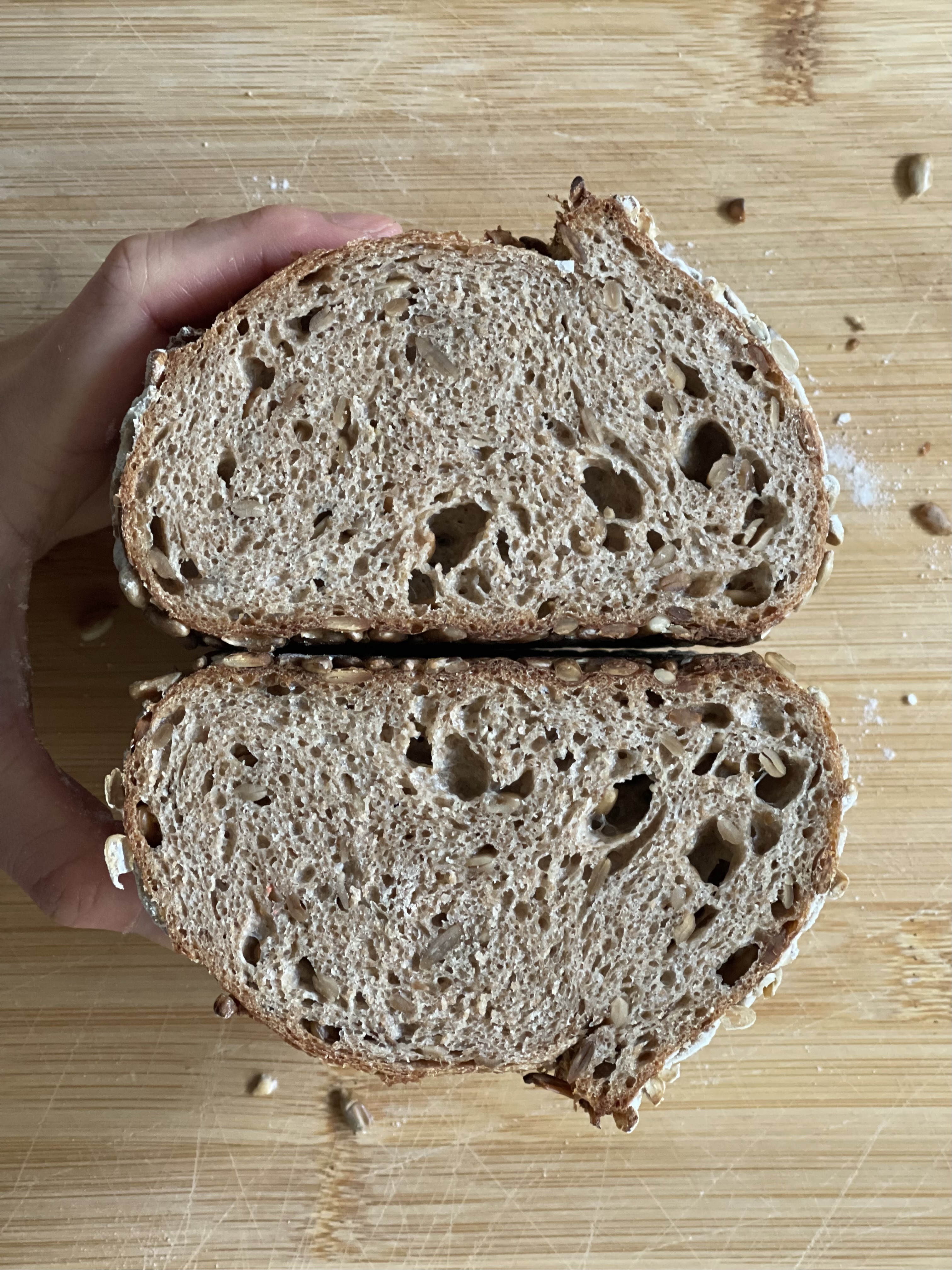 해바라기씨는 26% 넣었는데 더 늘려도 괜찮겠다는 생각이 들었다. 수분율도 조금 더 늘려보고 싶다.