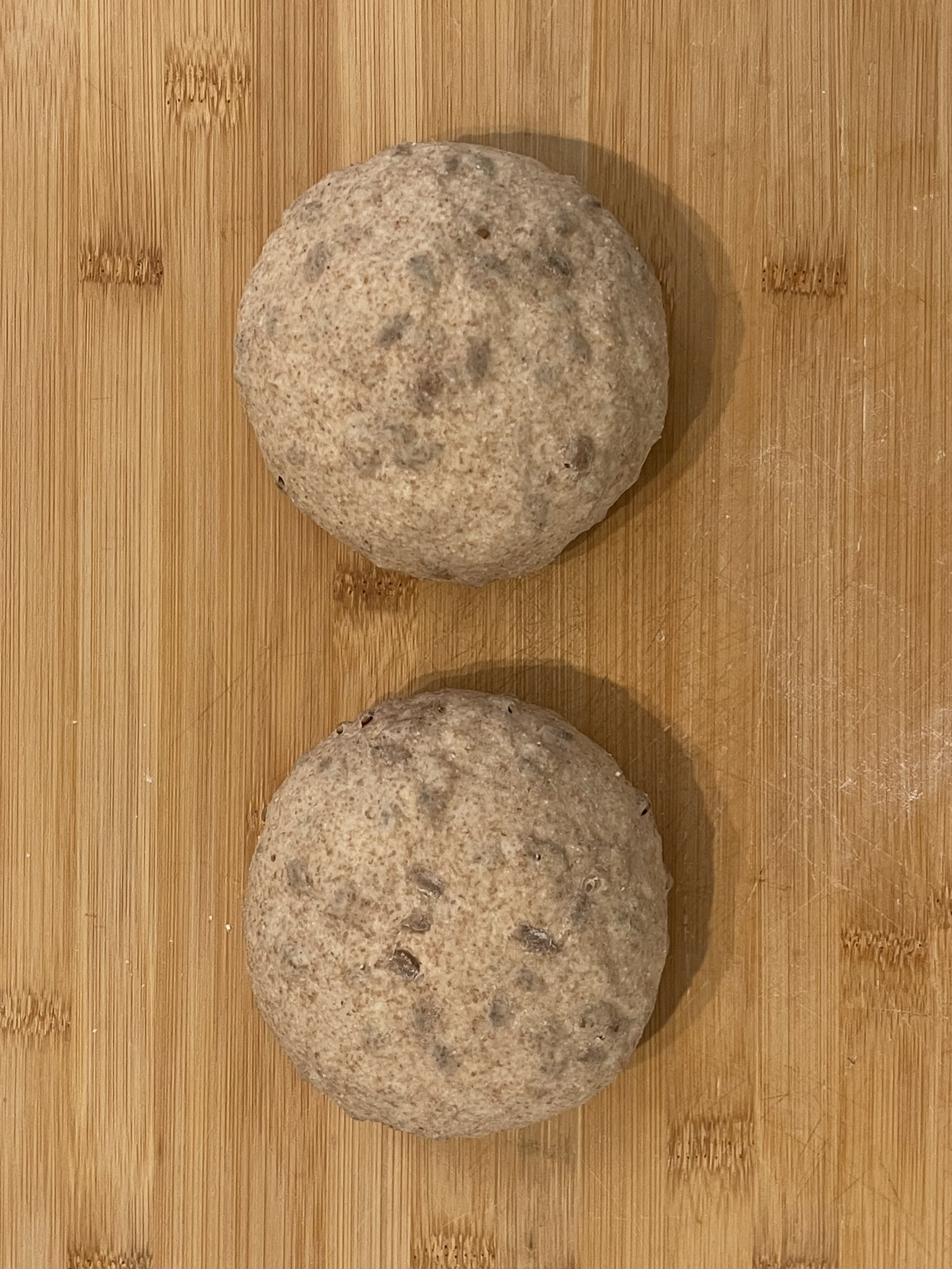 통밀 100%에 충전물이 들어간 것 치고 오븐스프링이 크게 잘 나온 듯 하다.