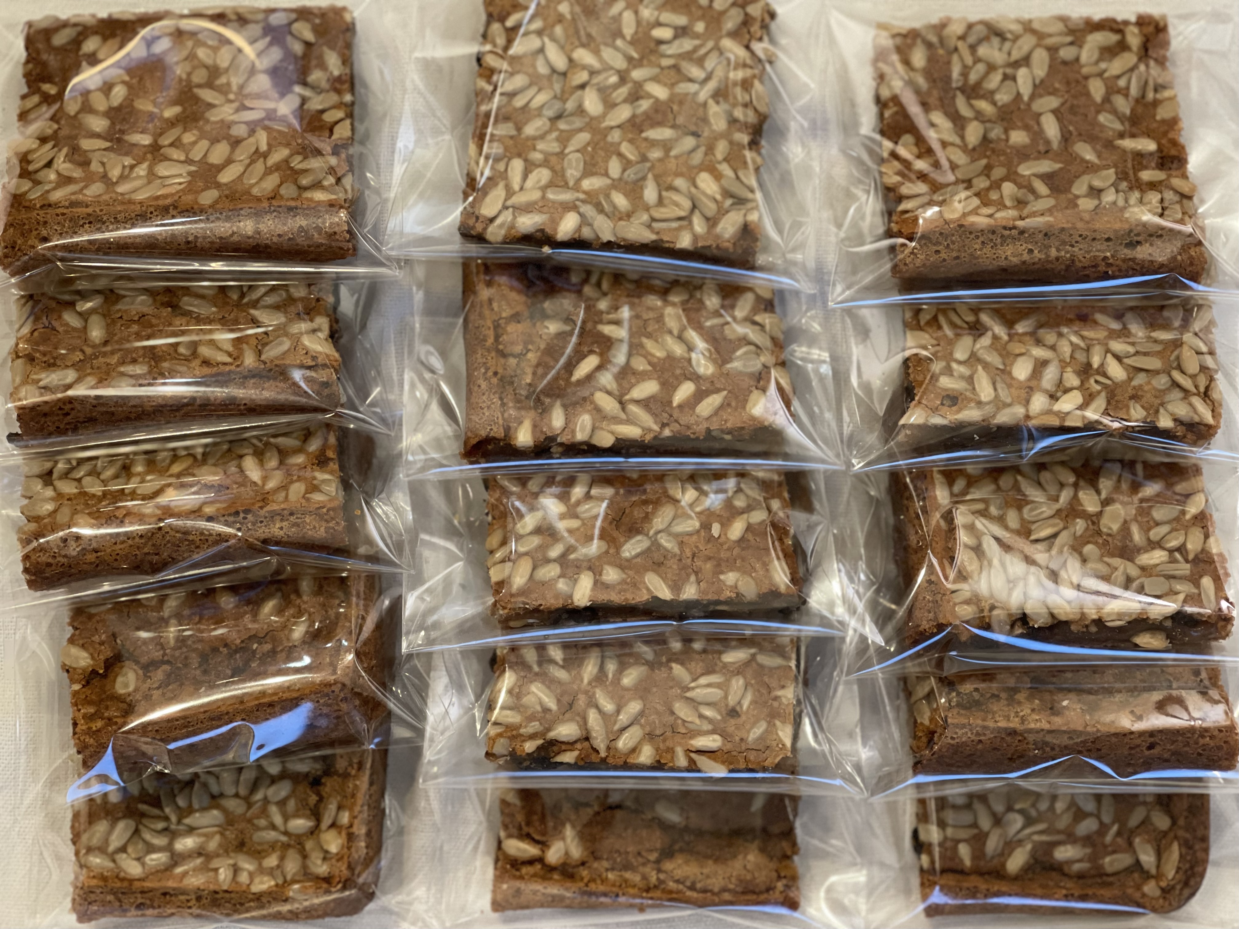 16등분 후 OPP 포장으로 깔끔하게 마무리. 사각 팬에 구우니 자르기도 수월했다.