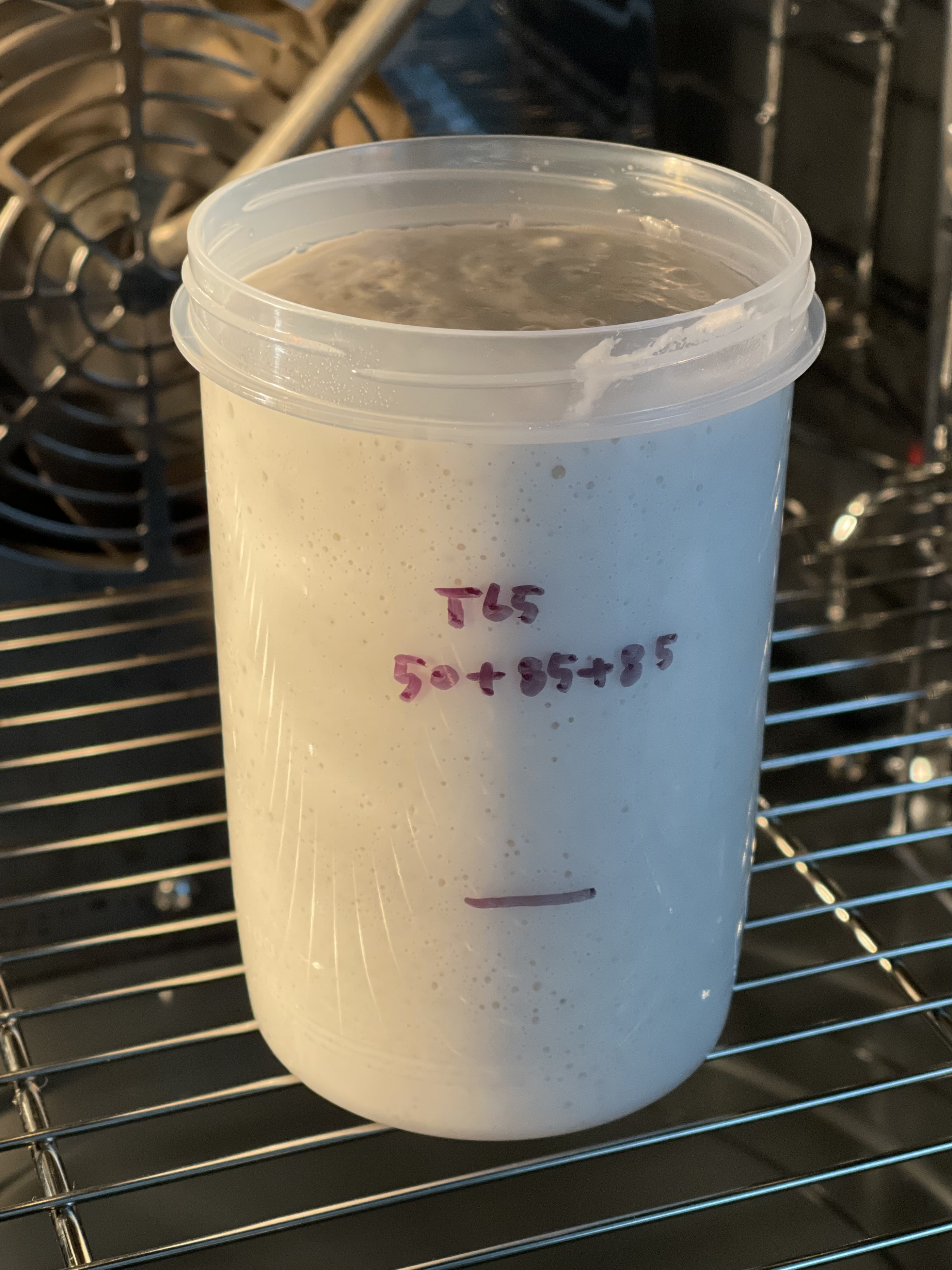 그런데 실수로 르방에 T65로 밥을 주고 말았다. 기존에 강력분 르방으로 유지하던 상태라 그런지, 약 2.5배까지는 무난하게 성장했다.