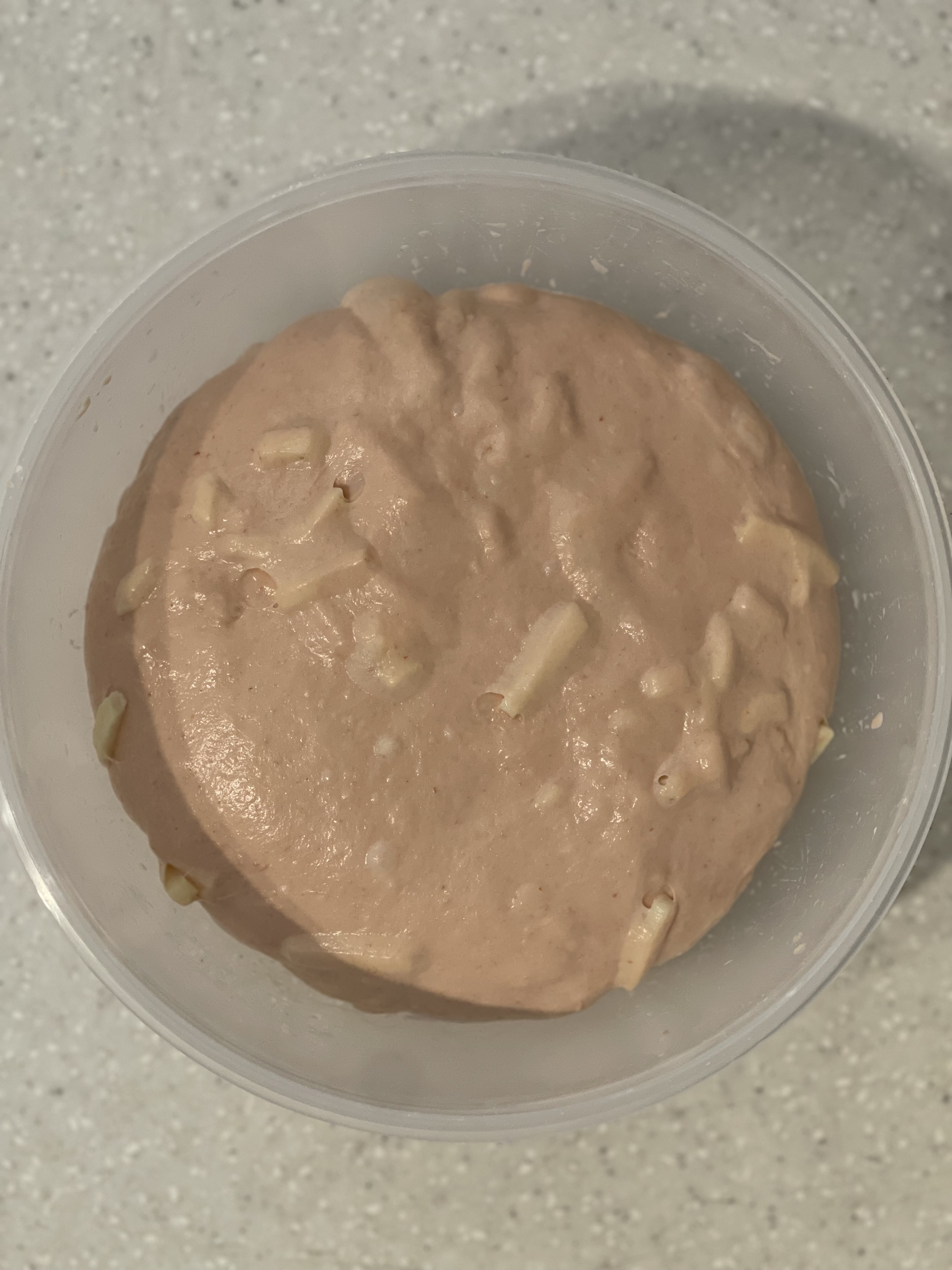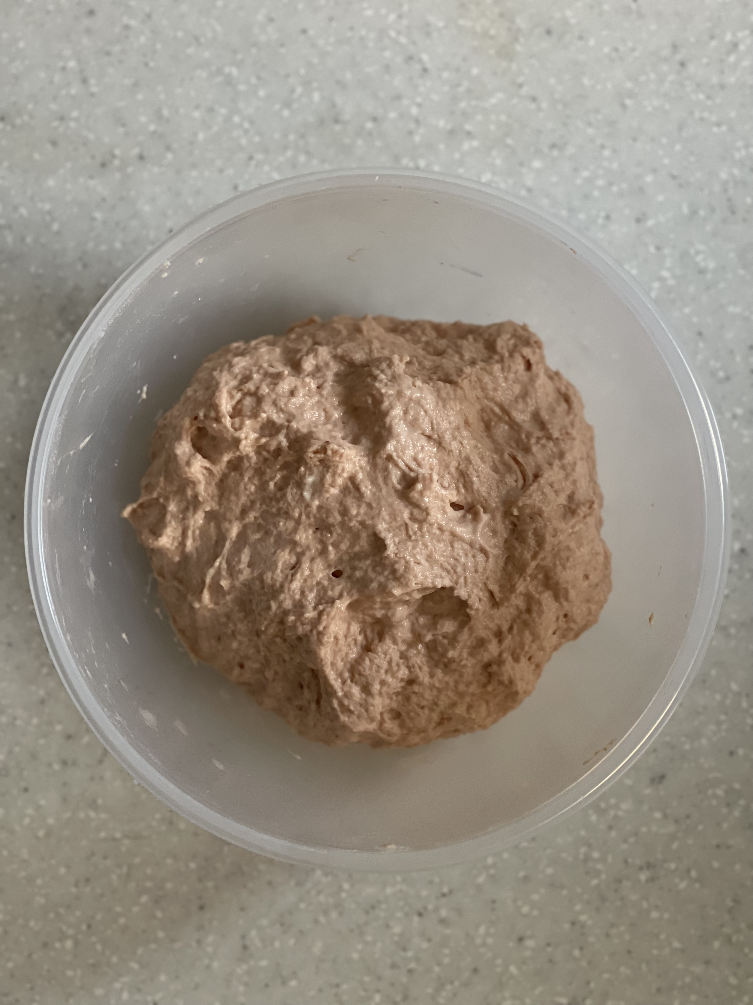 T65로 밥을 준 르방에 수화율이 낮은 맥선 유기농 강력분을 사용한 조합이라, 두 반죽 모두 기존보다 물을 10g 줄여 반죽했다.