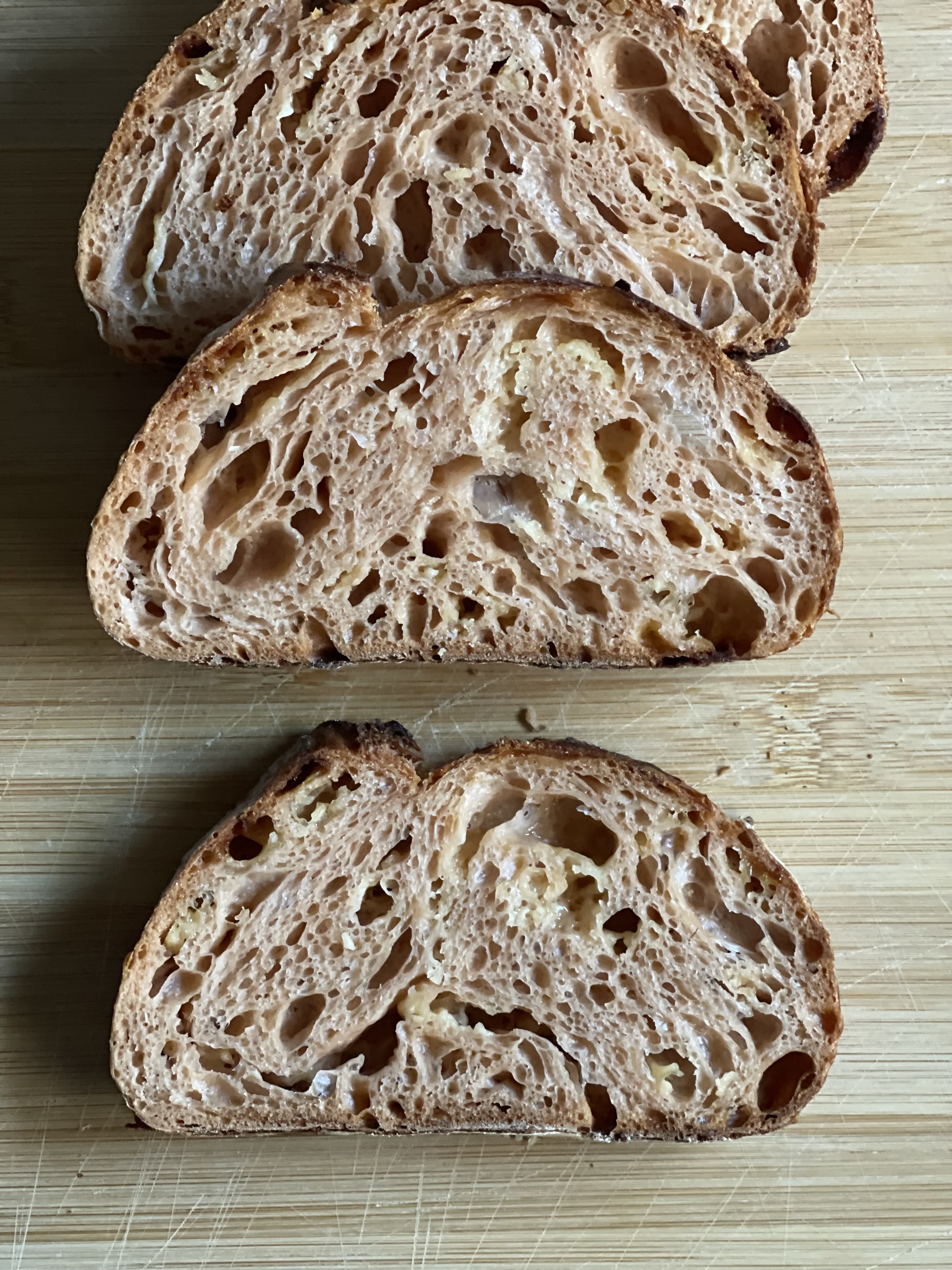 이번 베이킹은 변수가 많았지만, 오토리즈 시간 조정, 냉장 전 발효 추가, 굽기 전 실온화 같은 작은 조정들이 결과에 어떻게 반영되는지 확인할 수 있어 의미 있는 경험이었다.