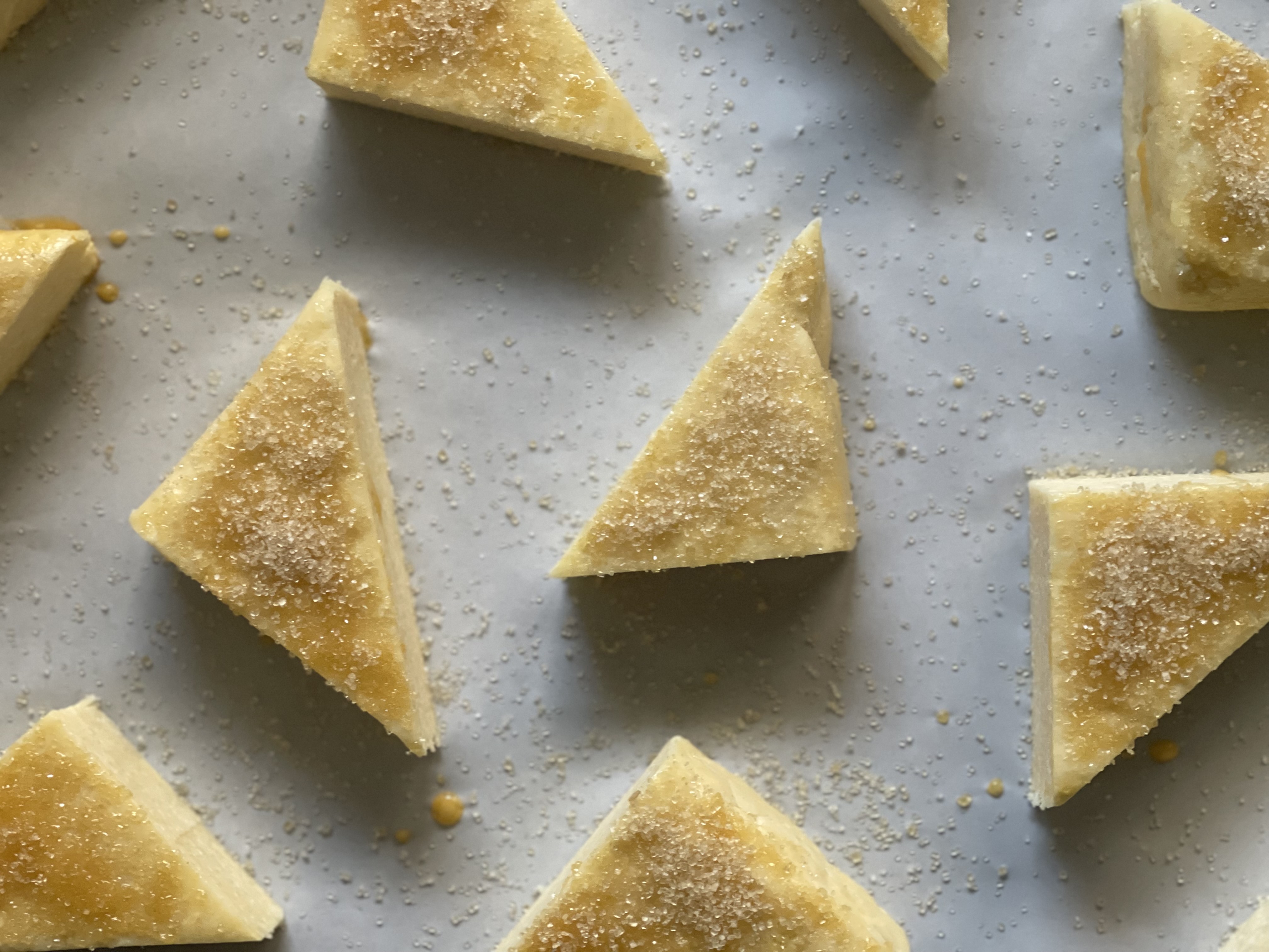 굽기 전 계란물을 바르고 비정제 설탕을 넉넉히 뿌렸다.