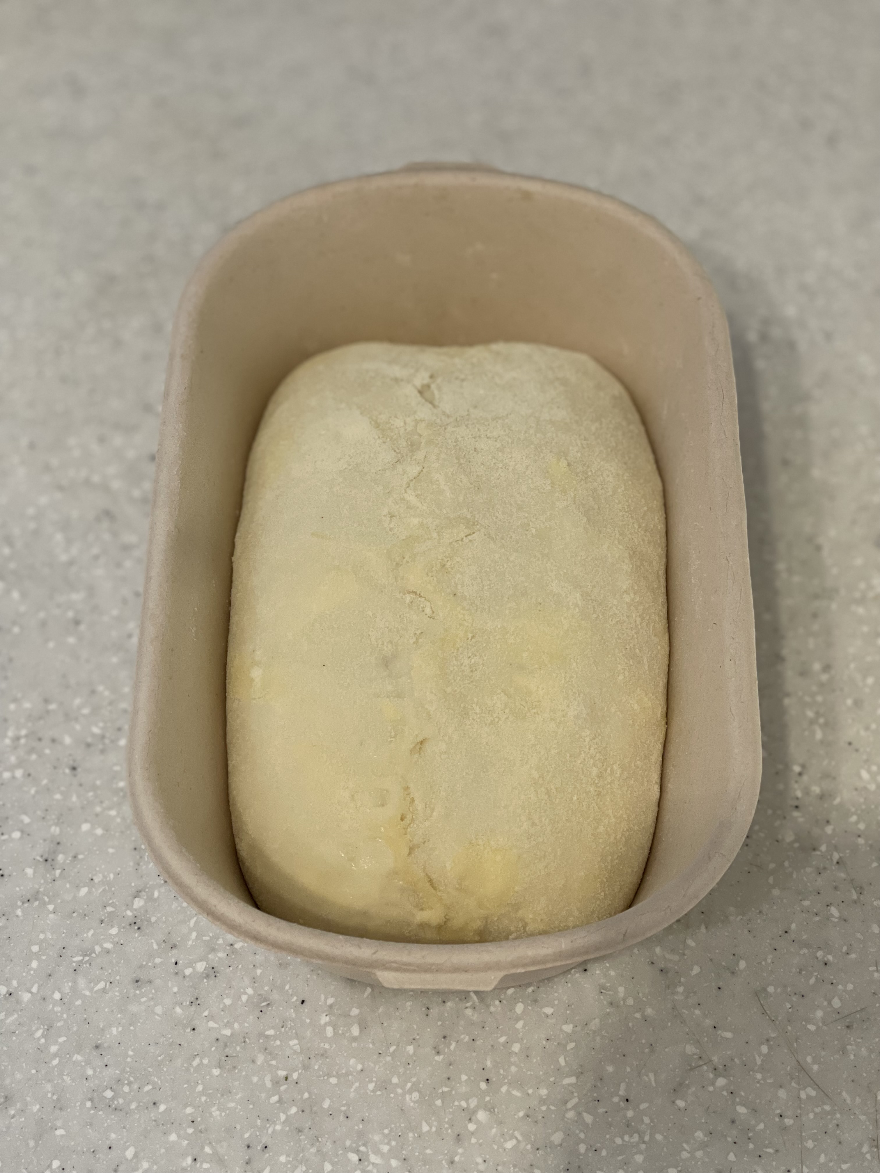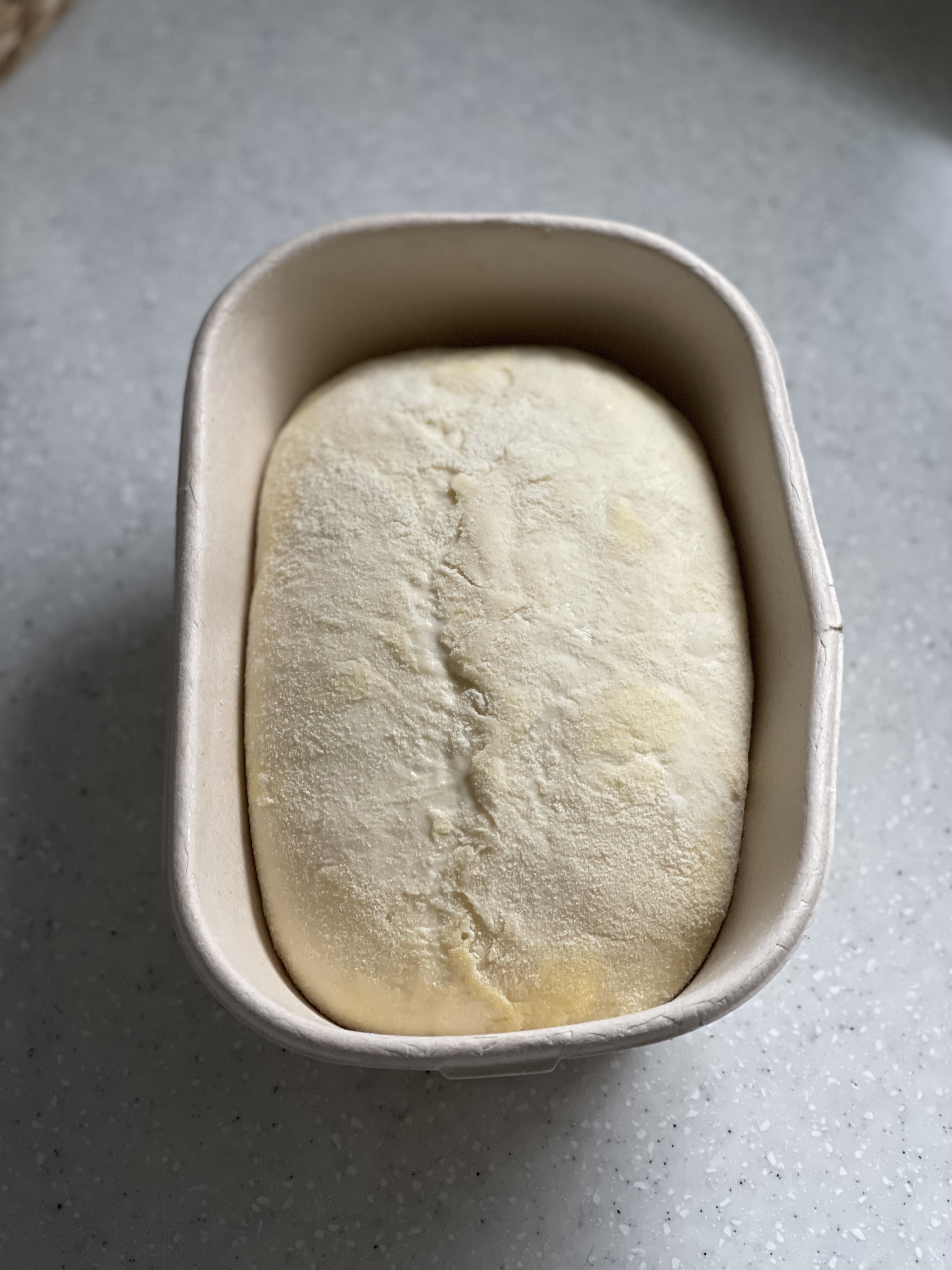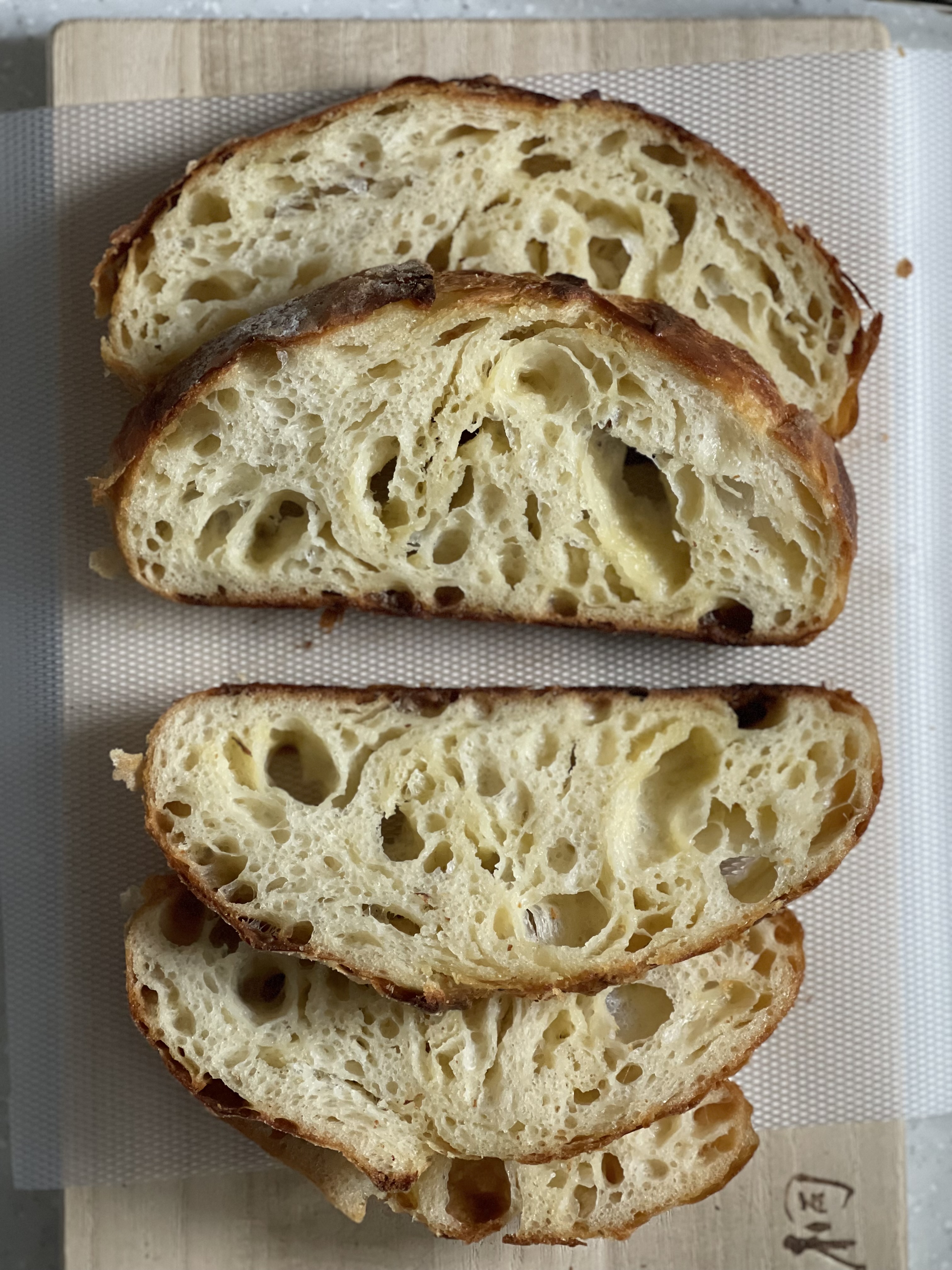 버터 함량이 높아 함께 구운 세몰리나 사워도우랑 중량이 비슷한데도 부피가 더 크게 나왔다.