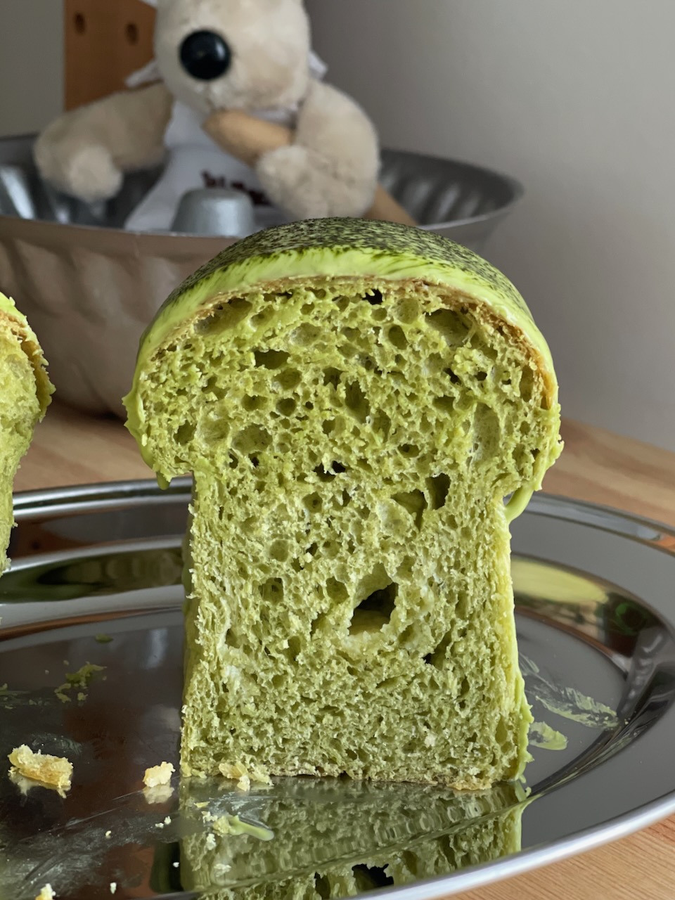 지난번에 만든 녹차 브리오슈가 너무 맛있어서 다시 한 번 구워보았다. 이번에는 반죽 온도를 낮추기 위해 얼음물을 받쳐 믹싱했고, 글루텐이 매끄럽게 잡히도록 시간을 들여 반죽했다. 다만, 버터를 넣기 전 단계에서 반죽 온도를 지나치게 낮추면 글루텐 형성이 더뎌지고 믹싱 시간이 길어지는 경향이 있었다. 다음에는 버터를 넣기 시작할 즈음에 얼음물을 받쳐 반죽 온도를 조절하는 것이 더 효과적일 것 같다.